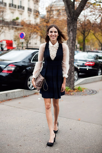Alexa Chung accents an otherwise ladylike look with a studded Valentino clutch to add just the right amount of edge. Also, she puts her best foot forward with a pair of absurdly adorable Charlotte Olympia kitty flats. Can I just say: I've developed a somewhat-healthy obsession with those charmingly quirky shoes. Santa Baby, do your thing—please & thank you.